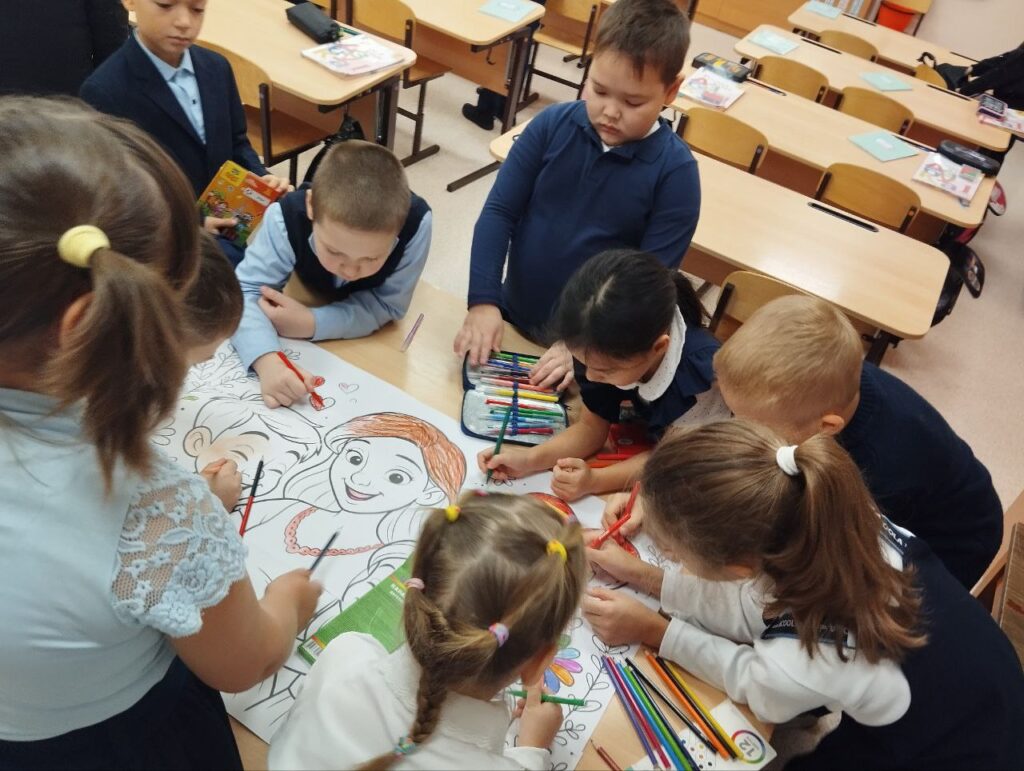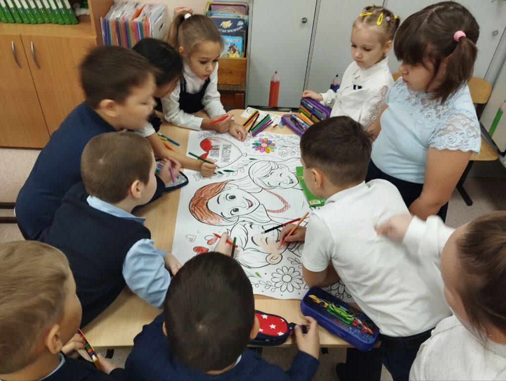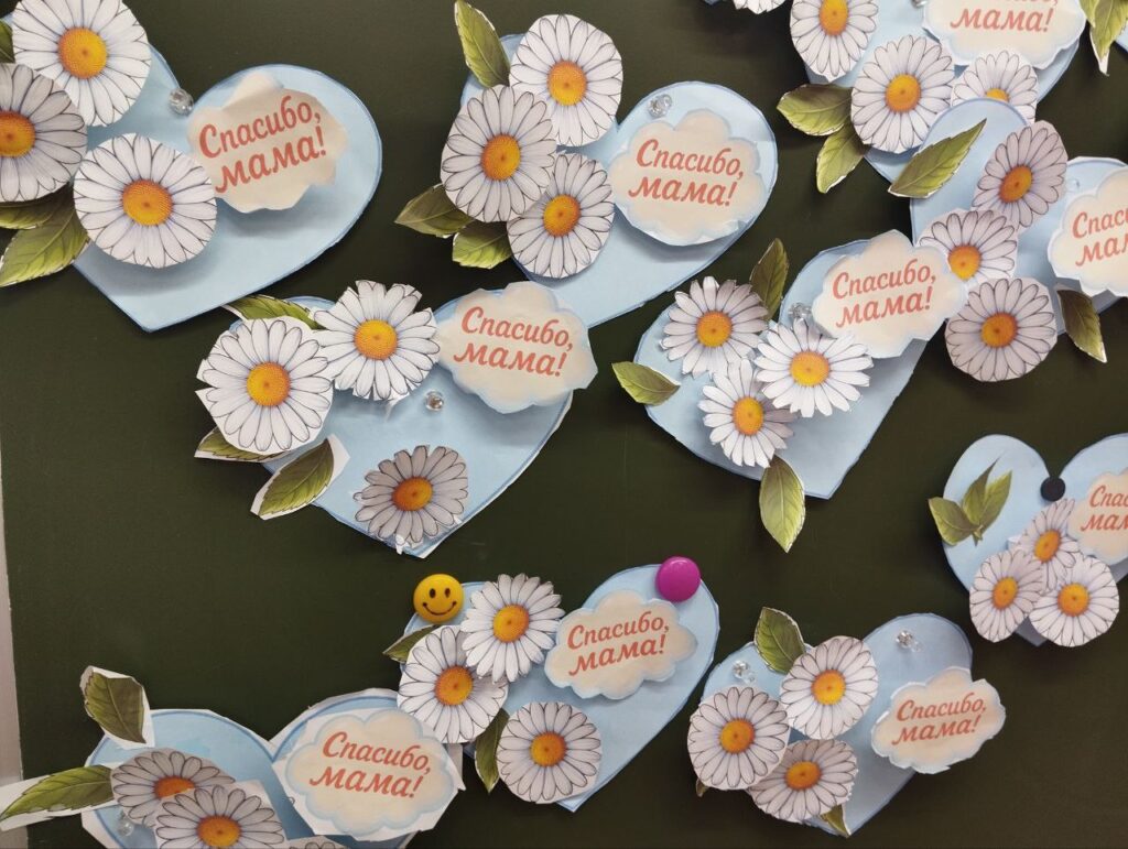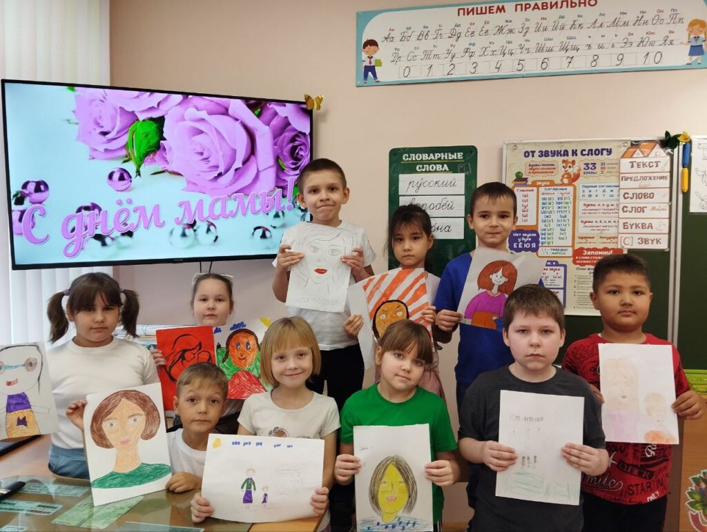 Ученики 1А класса Курманаевской школы (учитель Татьяна Сухарева) присоединились к акциям и поздравили своих мам.