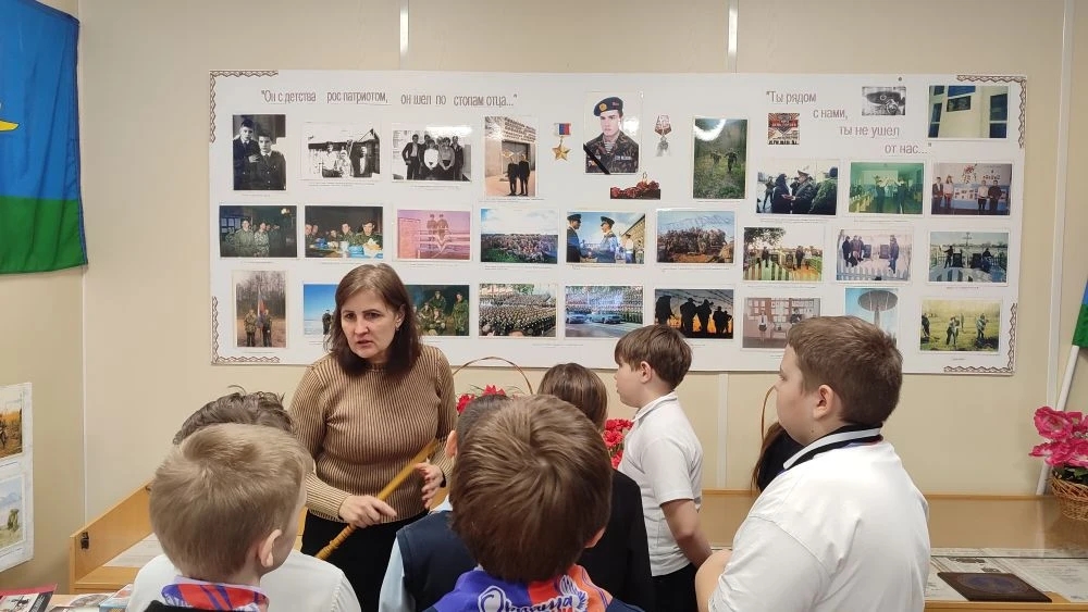 2. Экскурсии в школьный музей. Учащиеся начальных классов узнали историю подвига десантников, в числе которых был и Алексей Воробьев.