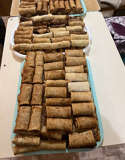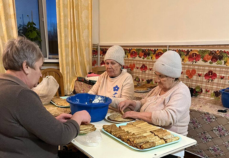 Сердечное спасибо всем, кто вносит свою лепту в общее благое дело. Массово участвовали в сборе гуманитарного груза михайловцы. Изо дня в день не смолкал шум в швейном цехе, где неустанно трудятся женщины-волонтеры под руководством Надежды Андреевой. По заявкам бойцов отправили маскировочные сети, антидроновые одеяла, пончо. Гуманитарку готовили к отправке в последние дни Масленичной недели. Побаловать бойцов в День защитника Отечества михайловцы решили домашними блинчиками, нафаршировав их творогом и мясом. С осени часть свежего карпа заморозили, на этот раз замариновали куски рыбы. К праздничному столу защитников закупили кур-гриль.